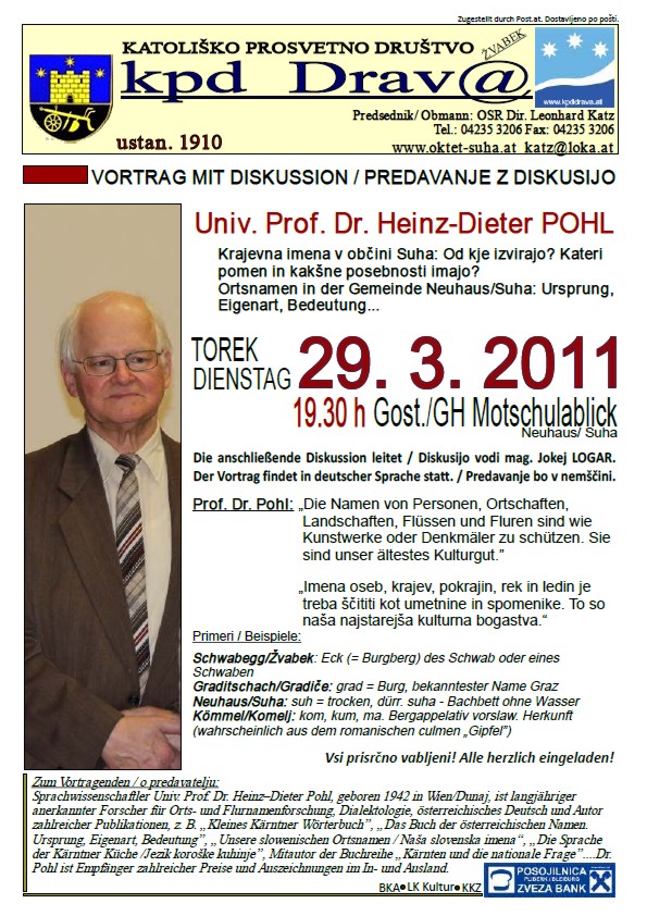 Na ta vprašanja bo predaval in odgovarjal univ. prof. dr. Heinz-Dieter Pohl z Univerze v Celovcu v torek, 29. marca ob 19.30 uri v gostilni Motschulablick na Suhi.